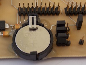 Для питания модуля RTC используется 3В батарейка. На рисунке видно , что держатель батареи несколько больше своего посадочного места. Я запаял на плату тот держатель, который был у меня в наличии.