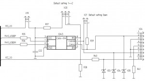 Перемычка X17 подключает между A и B терминальный резистор, необходимый на длинных линиях связи. Перемычка X13 подсоединяет питание к микросхеме драйвера.