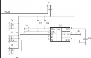Перемычки X6 – X8 предназначены для установки трех младших разрядов адреса устройства на шине I2C. X12 подсоединяет питание к микросхеме цифрового термометра. X14 можно подключить на вход внешнего прерывания и отслеживать наступление определенного события , например превышения температуры окружающей среды заданного значения.